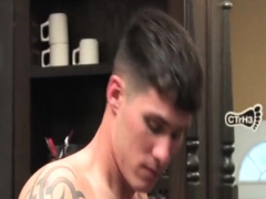 Tattoo gay double penetration with cumshot