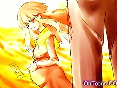 Little hentai sweet maid tugs and eats hard dick in close-up