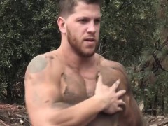 Hunk gay studs big black cocks are out in the woods for sex