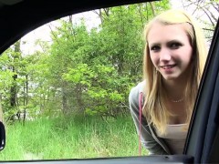 Cute amateur blonde teen Victoria Puppy fucked in a car